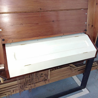 1ª/ Restauración de los elementos recuperables: caja, mecánica, tubería, teclado y pedalero.